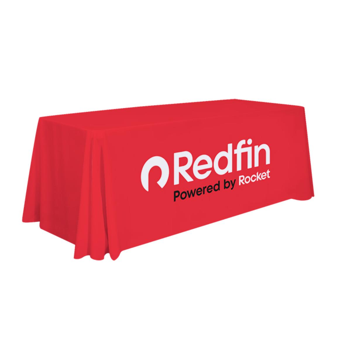 6-Foot standard table throw covers 4 sides of the table, made of flame retardant, premium polyester poplin fabric, machine washable and wrinkle resistant.