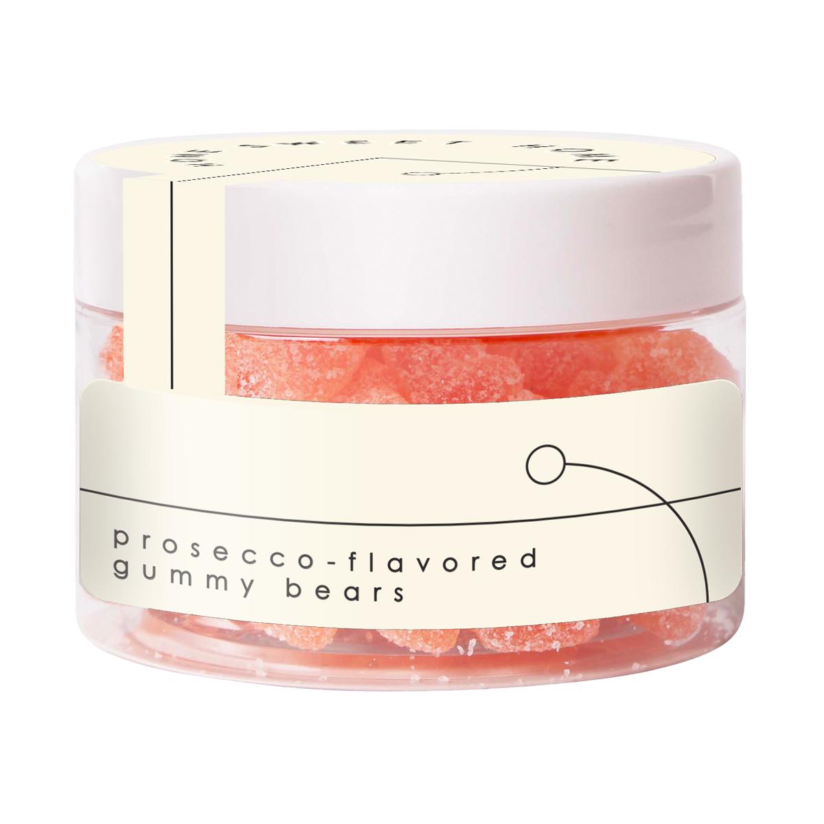Pop, fizz, clink - it's time for a toast! Enjoy a jar (3 oz) of Poppin' Prosecco Bears - Sweet prosecco-flavored gummy bears finished with tart sugar crystals. Non-alcoholic.