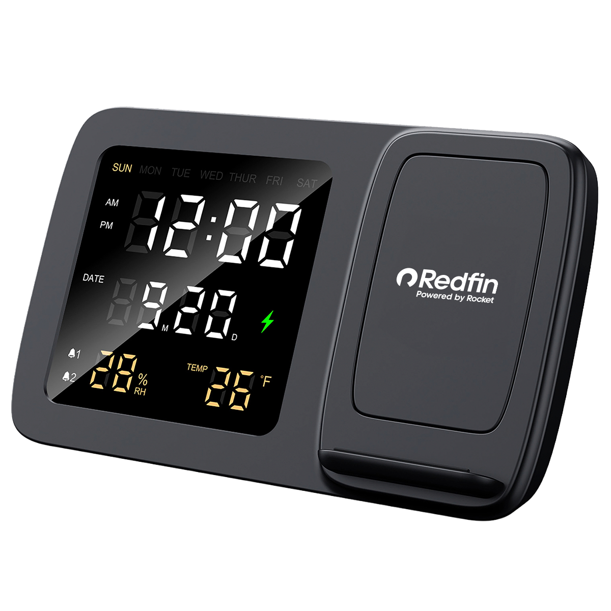 Experience unparalleled convenience at your home office or bedside with our 15-watt wireless charging phone stand. This versatile accessory not only keeps your phone powered up efficiently but also boasts a large digital display. Revel in the luxury of a digital clock, multiple alarm settings, a calendar, and integrated temperature/humidity sensors, providing a multifunctional solution that seamlessly integrates into your daily life. The included CR2032 battery keeps the clock, alarm, and date settings when the unit is unplugged but does not power the LCD screen or wireless charging.